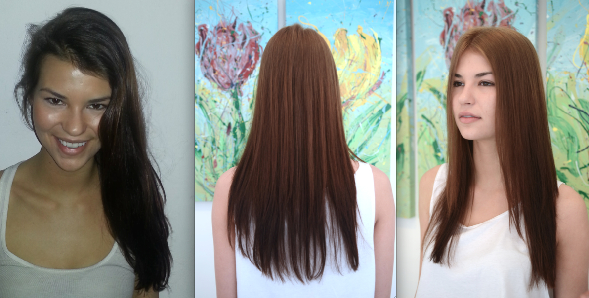 (transitional hair color by Shakira Vargas, weight reduction hair cut by Michael Schwarzer, Salon images provided by Sarah Grile)