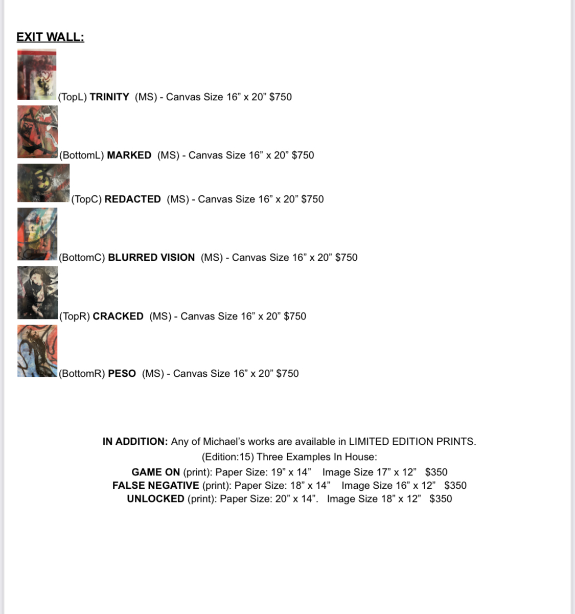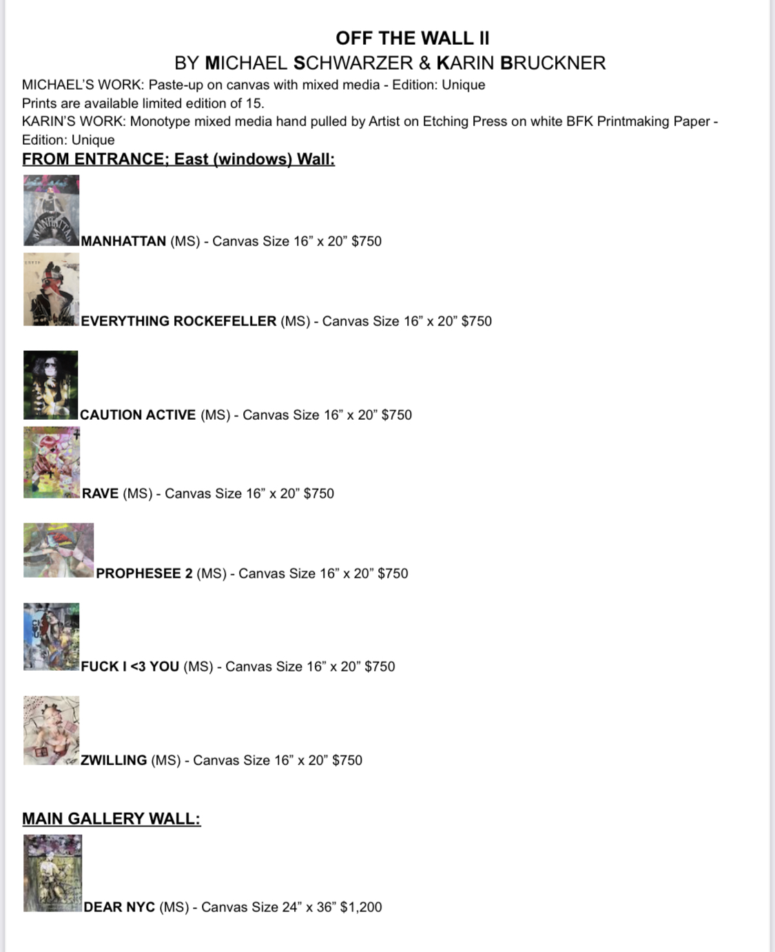 Michael Schwarzerâs body of work came out of, and exhibits, forced change. After 30 years in NYC, twenty of which fully supporting fine artists, with nothing but time and nowhere to go, he became one. The body of work in this collection is part of a series titled âResilienceâ-A One Woman Show, as he refers to it. Michael, a lover of street art, coupled his lock-down photo series sessions with his years of street art photography. In street fashion, he prints out, pastes up, paints over while also incorporating re-claimed paste-ups from NYC streets at times. There are several layers at work here combined with a forward-thinking sensibility,